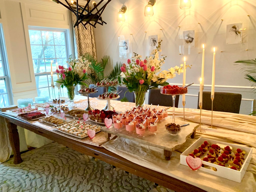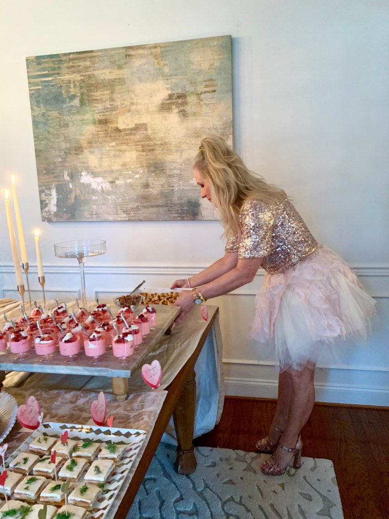 Planning a fun party for the girls can really be executed anytime of the year, but I find it especially festive to throw an “over the top” girly party around Valentine’s Day!…a Galentine’s Day Party, if you will. Add a theme to your party and the fun can begin before guests even knock at your door! With only one guideline for party attendance, guests were asked to arrive dressed in their favorite Sex and the City character. So in the days leading up to the event, friends were scouring their closets for their best Carrie, Samantha, Charlotte or Miranda outfits! So. Much. Fun.