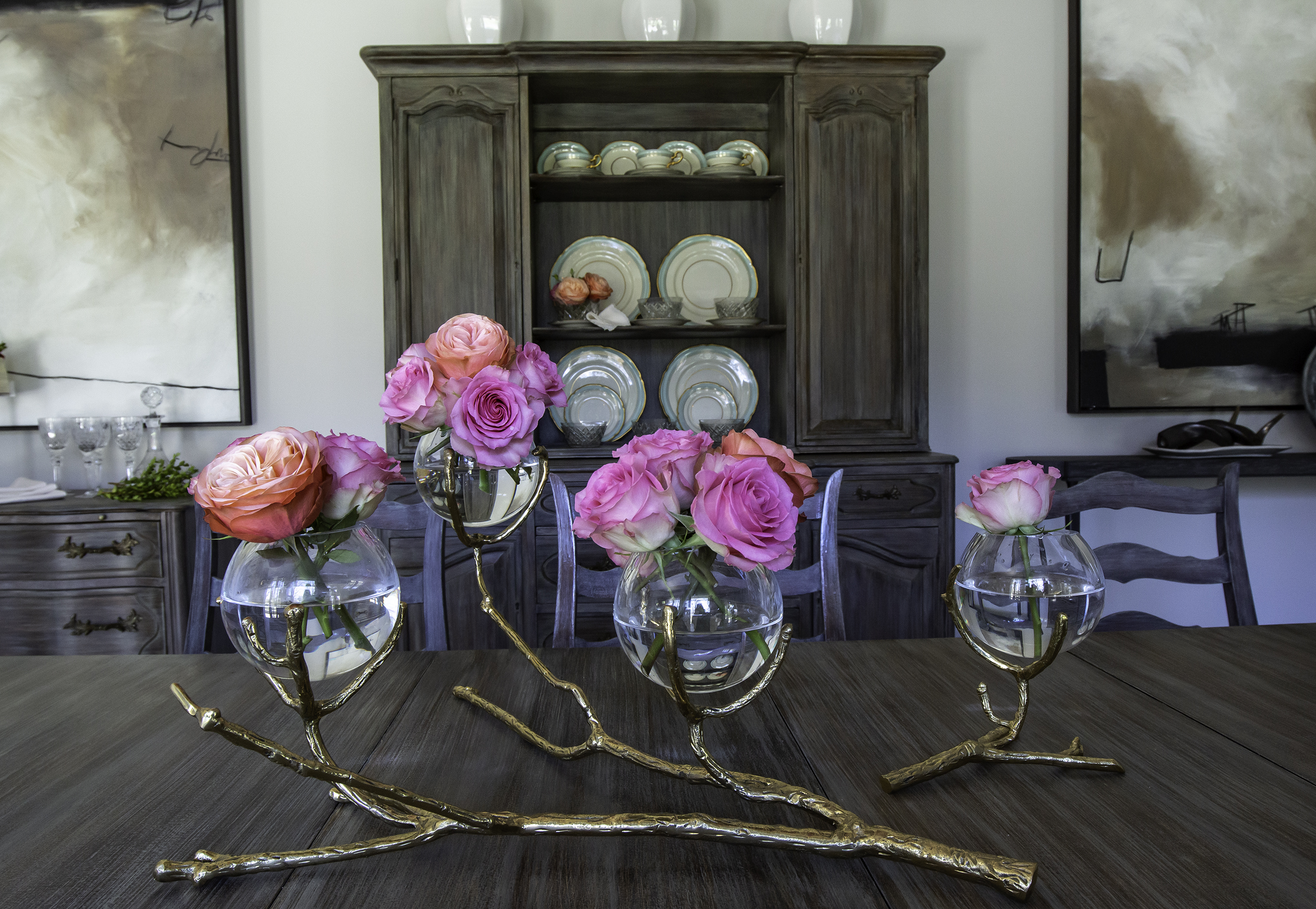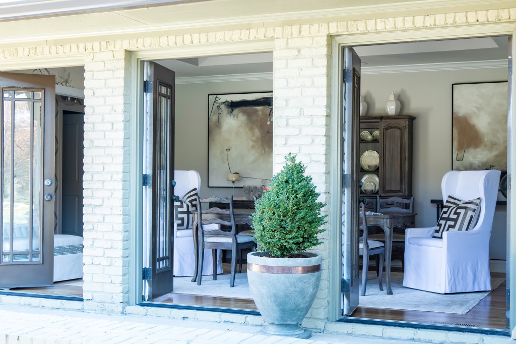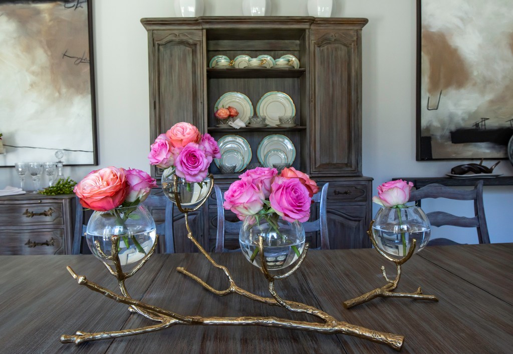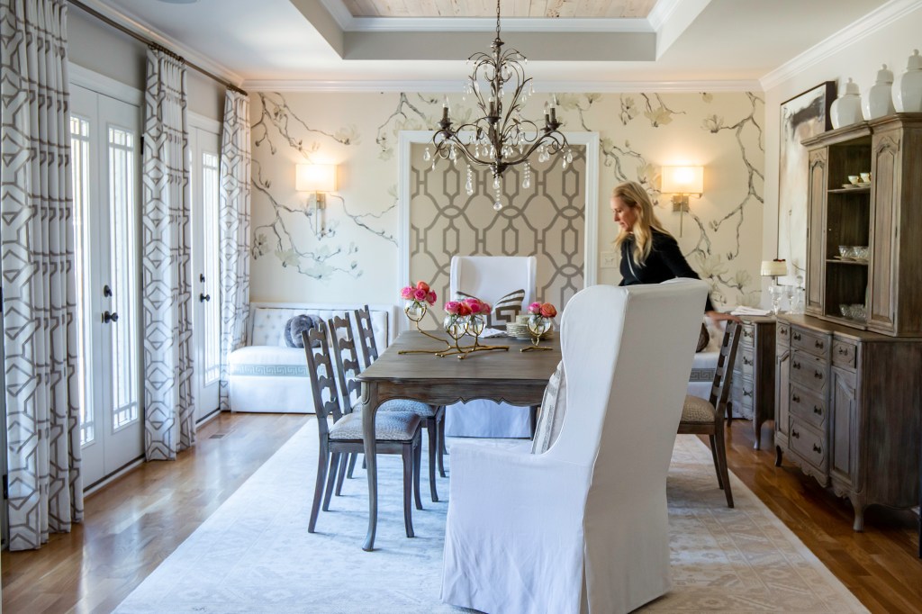 Soft layers create this maximalist dining space. The client’s vision began with her grandmother’s dining table, wooden ladder back side chairs, china and china cabinet. We then mixed in florals, abstracts, custom upholstery and pecky cypress details to create a luxurious room that is both old and new, masculine and feminine, classic and modern and 100% Grand Millennial!