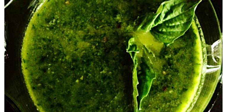 smoother sauce and this is what I prefer) and pulse until leaves are broken down. Stream in the olive oil, more for a loose sauce, less for one that is more dense. Do not over puree’ but, instead, keep it a bit course in nature.